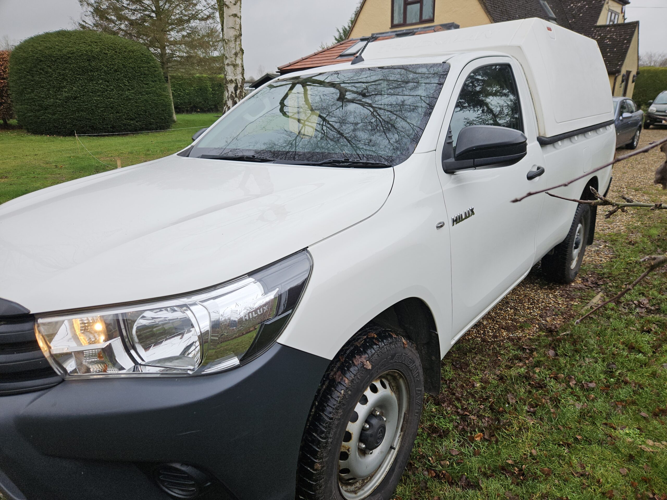Only 83,300 miles. Fully serviced. ULEZ compliant.SINGLE CAB Toyota Hilux 2020 (70 plate) 2.4 D-4D Diesel 150 PS 6-speed manual transmission with switchable 4WD, all working. Narrow body single cab 2 door, 2 seater pickup. 1 owner + ourselves from new and complete service history and very recent service on 12 Jan 26 of oil, air, pollen filters, all transmission levels, greased UJ’s and new front discs and pads Only 83,298 miles. Bluetooth, central locking, tow bar and pin hitch. Truckman top with lockable upper glass access. Load liner. Very few marks around vehicle at all. Excellent condition throughout. Three keys. The vehicle is ULEZ compliant. MOT until 08/10/2026.